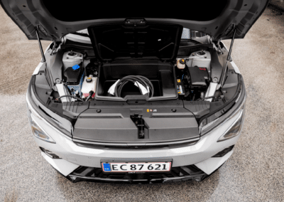 Med lynhurtig og problemfri opladning kan du nå 343 km på kun 15 minutter ved en lynlader. Det store højspændingsbatteri sikrer, at du kan fortsætte din rejse uden bekymringer. Og med den udvidede rækkevidde har du friheden til at udforske, så langt og så bredt som vejen – og din fantasi – fører dig.