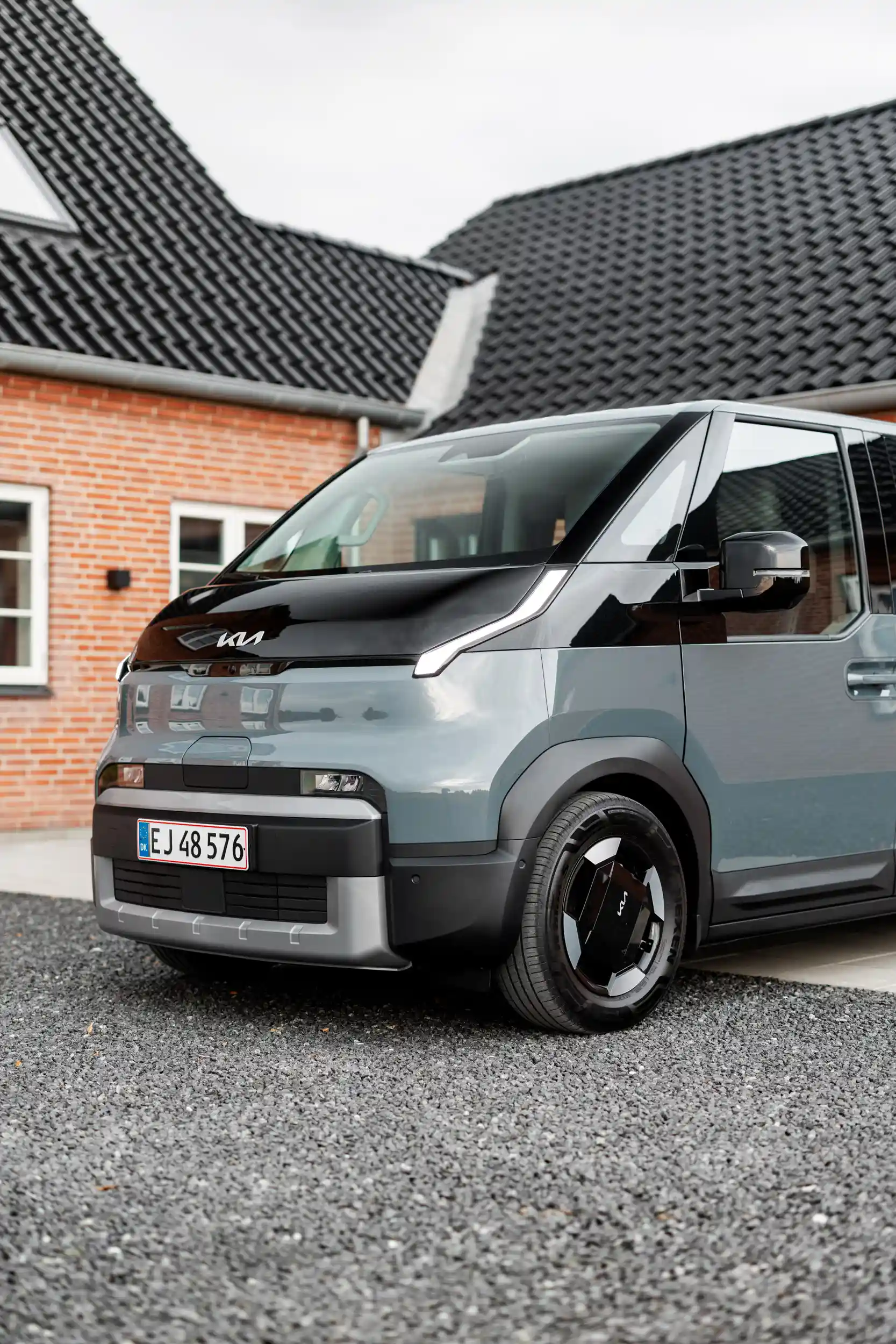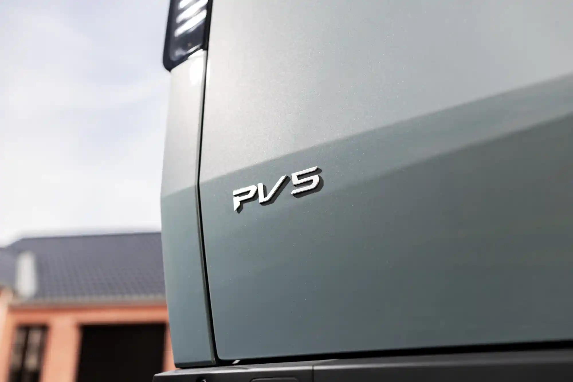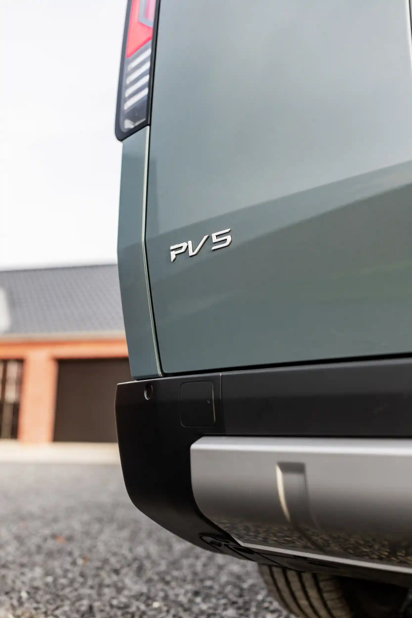 Den dristige signaturbelysning og de slanke sorte accenter på hovedlygte enhederne forstærker PV5’s moderne udtryk, mens den markante profil-linje understreger bilens geometriske silhuet og bidrager til et robust, stilrent design.