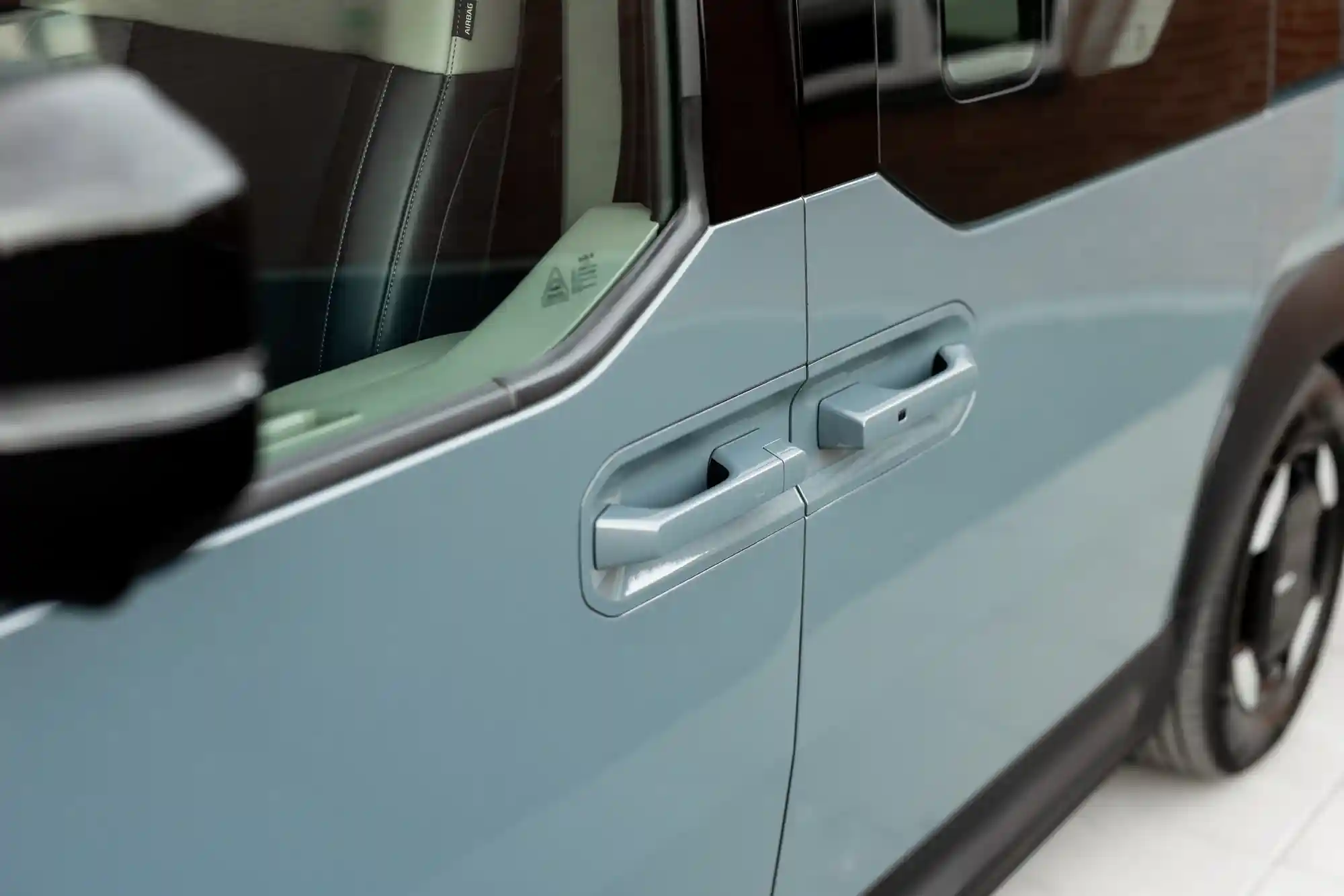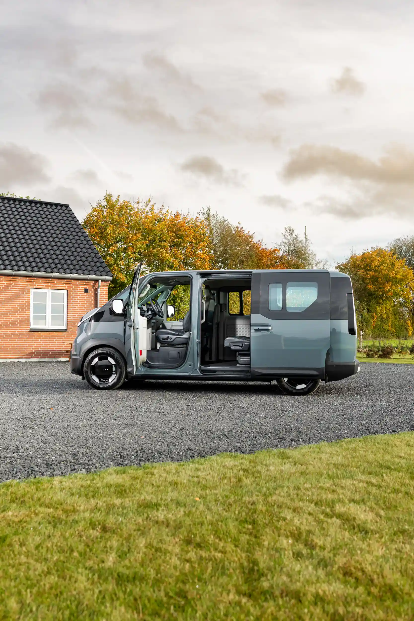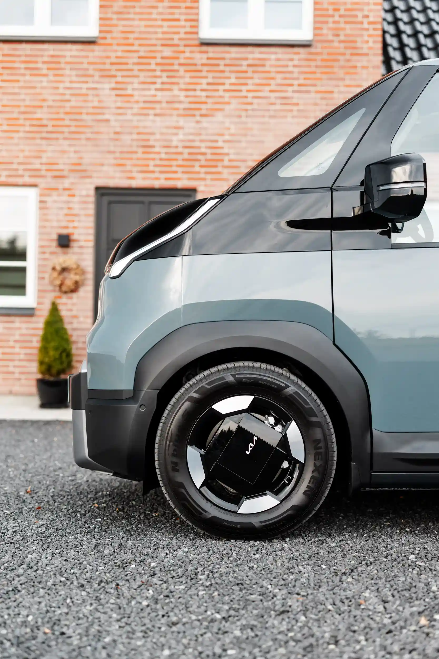 Den dristige signaturbelysning og de slanke sorte accenter på hovedlygte enhederne forstærker PV5’s moderne udtryk, mens den markante profil-linje understreger bilens geometriske silhuet og bidrager til et robust, stilrent design.